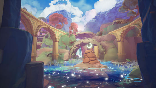 Create an aesthetic, stylized, interactive 3D environment composed of modular assets of a natural quality.